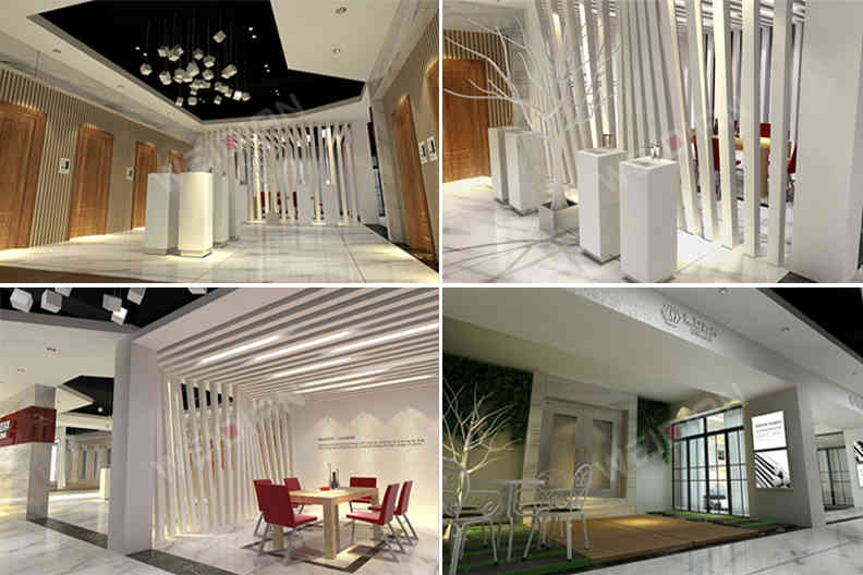 整個(gè)展臺(tái)設(shè)計(jì)方案簡(jiǎn)潔大氣,外觀與陳列展示的修飾沒有過度消費(fèi),塊面直線條干凈利落,玻璃和鏡面不銹鋼營(yíng)造空間的通透和延伸,簡(jiǎn)約質(zhì)樸的材料做出優(yōu)雅和品味,更能適應(yīng)現(xiàn)代未來(lái)高效快捷的特點(diǎn)。合理明智的選材及完美的運(yùn)用使整體看起來(lái)極具品質(zhì)感,設(shè)計(jì)師還注重生態(tài)的營(yíng)造,綠化穿梭連貫活潑